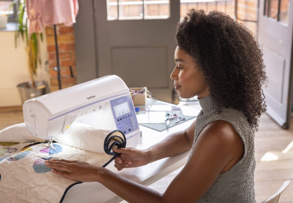 L'un des atouts majeurs de la Brother Innov-Is 1350 est son vaste espace de travail de 210 mm (de l'aiguille à la colonne). Cet espace généreux est une véritable aubaine pour manipuler facilement les grandes pièces de tissu, les édredons épais, les tentures ou les projets complexes sans qu'ils ne s'encombrent sous le bras de la machine. C'est la garantie d'un confort de couture optimal, même sur les ouvrages les plus ambitieux.