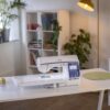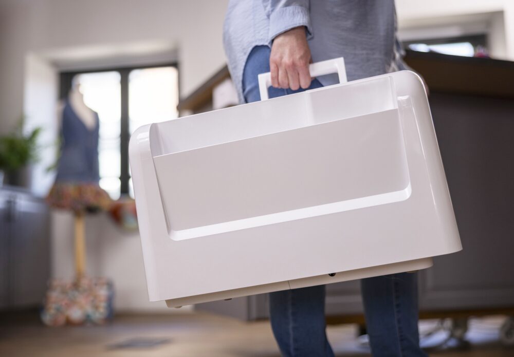 Son design compact et ses touches tactiles intuitives rendent son utilisation agréable au quotidien. La possibilité de coudre sans pédale grâce aux touches Marche/Arrêt ajoute encore à son confort et à sa polyvalence, vous permettant de vous concentrer pleinement sur votre création.