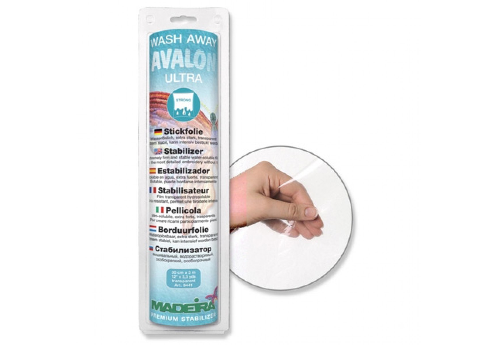 Stabilisateur hydrosoluble, très résistant et transparent de marque Madeira. Rouleau de 30 cm x 3 m.